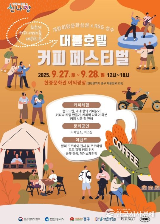 한국시사경제 윤광희 기자 | (재)인천중구문화재단은 오는 9월 27일~28일 이틀간 한중문화관 야외광장 일원에서 ‘대불호텔 커피 페스티벌’을 개최한다고 밝혔다.