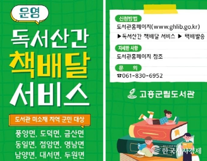 한국시사경제 전남취재본부 | 고흥군은 독서 소외 지역 주민의 독서 접근성을 높이기 위해 9월부터 ‘독서 산간’ 책 배달 서비스를 시범 운영한다고 밝혔다.