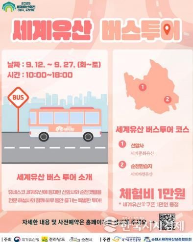 한국시사경제 전남취재본부 | 순천시와 순천시 세계유산보존협의회는 오는 12일부터 27일까지 ‘2025 세계유산축전 선암사, 순천갯벌’ 버스투어 프로그램을 운영한다고 밝혔다.