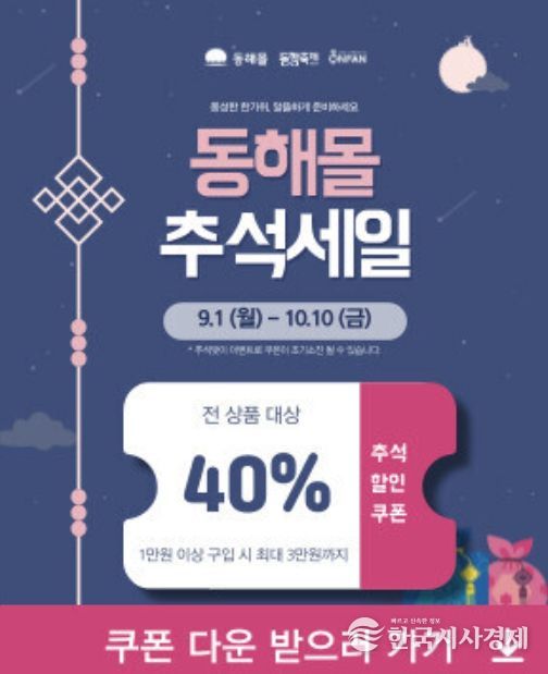 한국시사경제 이정이 기자 | 동해시는 지역 온라인 쇼핑몰인 동해몰에서 추석을 맞아 특별 할인 이벤트를 진행한다고 밝혔다.