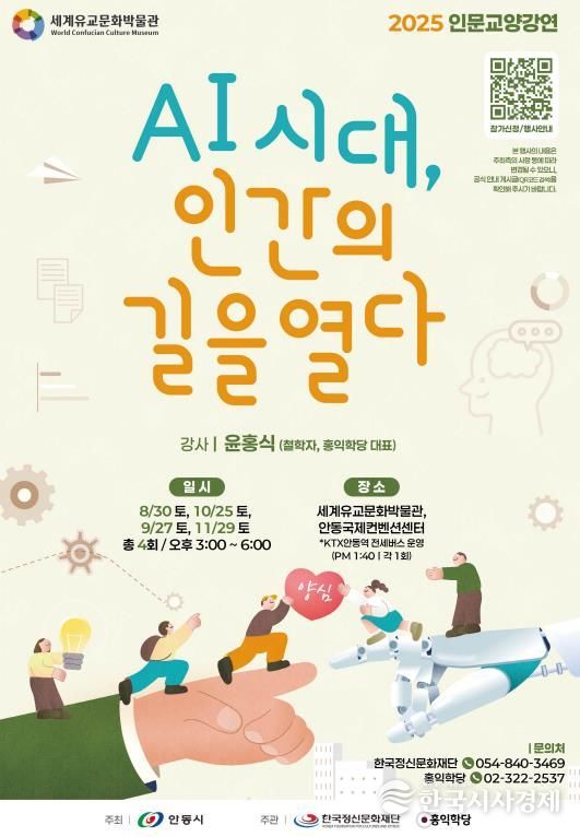 강연자로 나선 윤홍식 홍익학당 대표는 인공지능이 인간을 대체할 수도 있는 시대에, 인간이 주체적으로 살아가기 위해서는 ‘인성지능(HI)’이 필수적임을 강조했다. 그는 퇴계학을 계승한 면우 곽종석 학맥의 유교 철학자로서, 동서양 철학․사상․종교를 아우르는 연구를 이어오고 있다. 특히 유교의 핵심 개념인 ‘양심(良心)’을 화두로 제시하며 대중의 깊은 공감을 얻고 있다.
