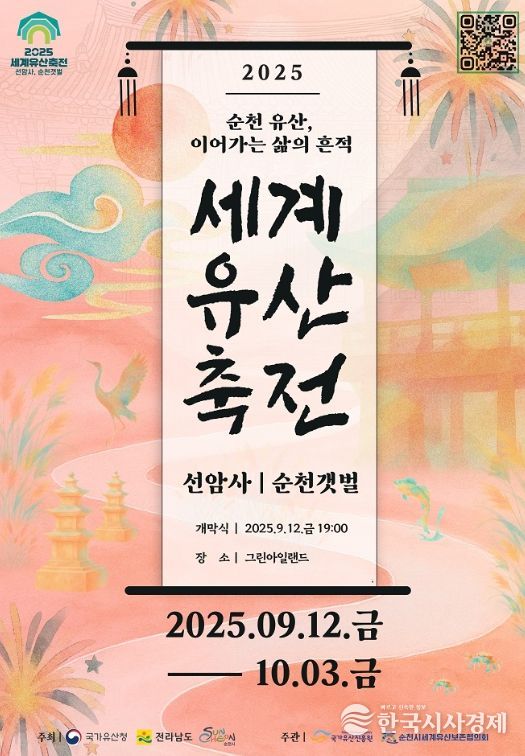 한국시사경제 전남취재본부 | 순천시와 순천시 세계유산보존협의회는 2025 세계유산축전-선암사, 순천갯벌을 통해 천년의 역사를 간직한 선암사와 살아 숨 쉬는 갯벌을 배경으로 공연, 전시, 투어, 체험 등 22일간 감성 가득한 축제를 펼친다.