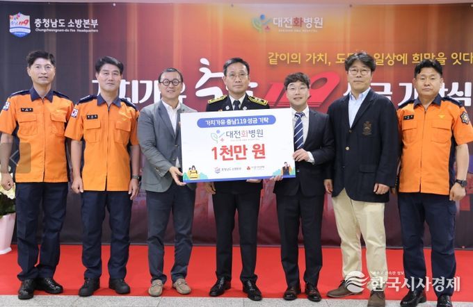 한국시사경제 오영주 기자 | 충남소방본부는 5일 도청 7층 소방본부에서 ‘가치가유 충남119’ 성금 전달식을 열고, 대전화병원으로부터 1000만 원을 기탁받았다.