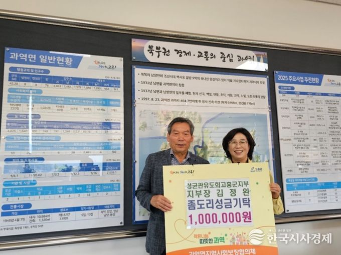 김정완 지부장은 “어려운 경제 여건 속에서도 지역사회가 서로 돕고 나누는 것이 중요하다”며 “우리 과역면이 따뜻하고 정이 넘치는 공동체로 이어지기를 바라는 마음으로 성금을 준비했다. 앞으로도 지역사회와 함께 나누고 섬기는 활동을 꾸준히 이어가겠다”고 전했다.