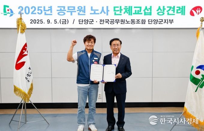 한국시사경제 충북취재본부 | 단양군과 전국공무원노동조합 충북지역본부 단양군지부가 지난 5일 군청 소회의실에서 김문근 단양군수와 주재길 지부장 등 노·사 양측 교섭위원이 참석한 가운데 2025년 단체교섭 추진을 위한 상견례를 가졌다.