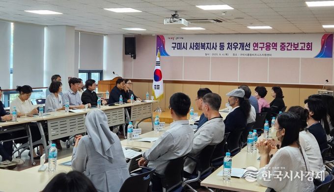 한국시사경제 경북취재본부 | 구미시는 지난 4일 구미시종합비즈니스지원센터 대회의실에서 사회복지시설과 단체 종사자 50여 명이 참석한 가운데 '사회복지사 등 처우개선 실태조사를 통한 3개년 종합계획 수립 연구용역' 중간보고회를 열었다.