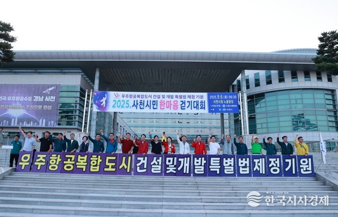 한국시사경제 윤광희 기자 | 사천시는 지난 6일 시청 노을광장에서 열린 ‘우주항공복합도시 건설 및 개발 특별법 제정 기원 2025 사천시민 한마음 걷기대회’를 시민 3천여 명이 참여한 가운데 성황리에 개최했다고 7일 밝혔다.