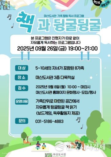 한국시사경제 윤광희 기자 | 김포시 마산도서관에서 오는 9월 26일 금요일 19시부터 21시까지 가족 힐링 독서프로그램 ‘책과 뒹굴뒹굴’을 운영한다.