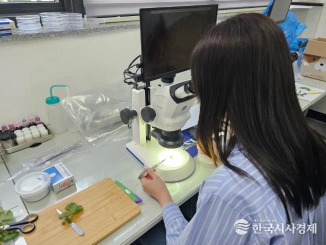 딸기 화아분화 검경은 딸기묘의 생장점을 현미경으로 관찰해 꽃눈 분화 정도를 확인하는 작업이다.