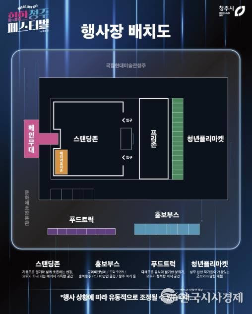 행사 현장에는 충북청주프로축구단, 청주공예비엔날레, 청년뜨락5959, 청주상공회의소, 충북문화재단, 청주시문화산업진흥재단 등 지역 대표 기관의 다양한 홍보부스가 오후 3시부터 저녁 7시 30분까지 운영된다.