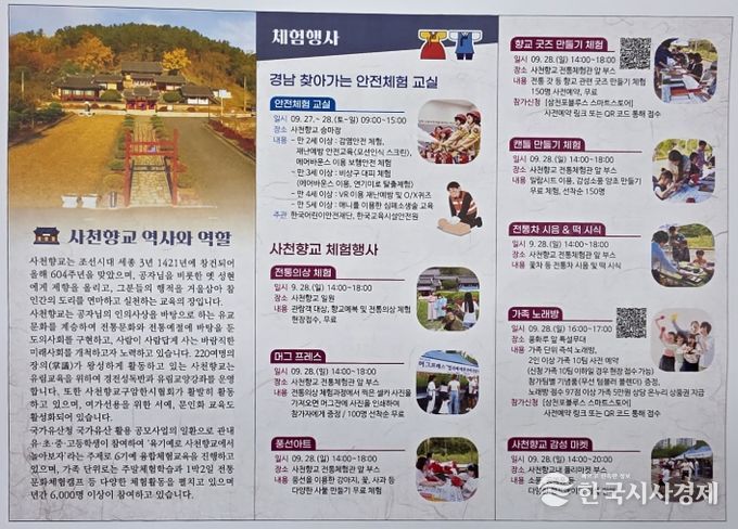 행사 전날인 27일과 28일 오전 9시부터 오후 3시까지 사천향교 승마장에서 '경남 찾아가는 안전체험 교실'이 운영된다.
