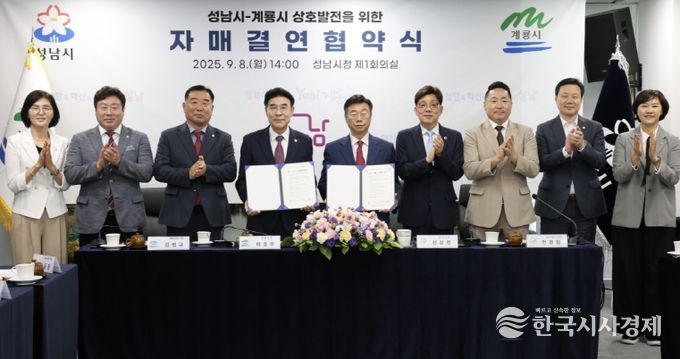 한국시사경제 김태훈 기자 | 계룡시와 경기도 성남시가 8일 성남시청에서 우호 교류 증진과 상호 발전 자매결연 협약을 체결했다고 밝혔다.