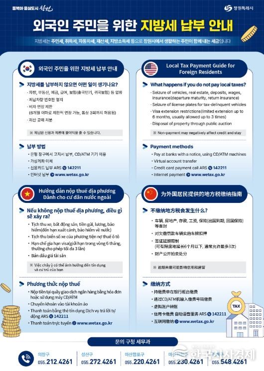 특히 올해는 4개 국어(한국어·영어·베트남어·중국어) 지방세 납부 안내문을 제작해 출입국·외국인사무소, 외국인근로자지원센터, 가족센터, 구청 및 읍면동 행정복지센터 등 외국인 생활 밀접 기관에 배부했다.