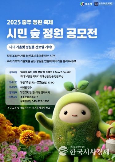 한국시사경제 충북취재본부 | 충주시가 주최하고 (재)충주문화관광재단이 주관하는 ‘2025 충주 정원 축제’에서 ‘추억을 심는 가을 정원’을 주제로 시민 숲 정원 공모전을 개최한다고 밝혔다.