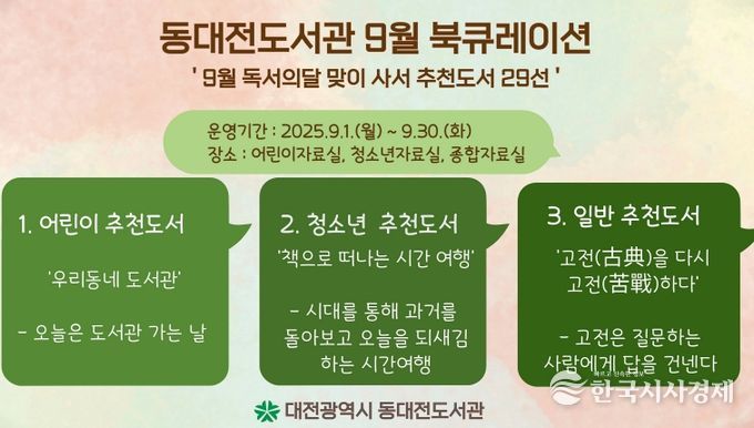 한국시사경제 대전취재본부 | 동대전도서관은 9월 한 달 동안 ‘독서의 달 맞이 사서 추천 도서 29선’ 북큐레이션을 운영한다.