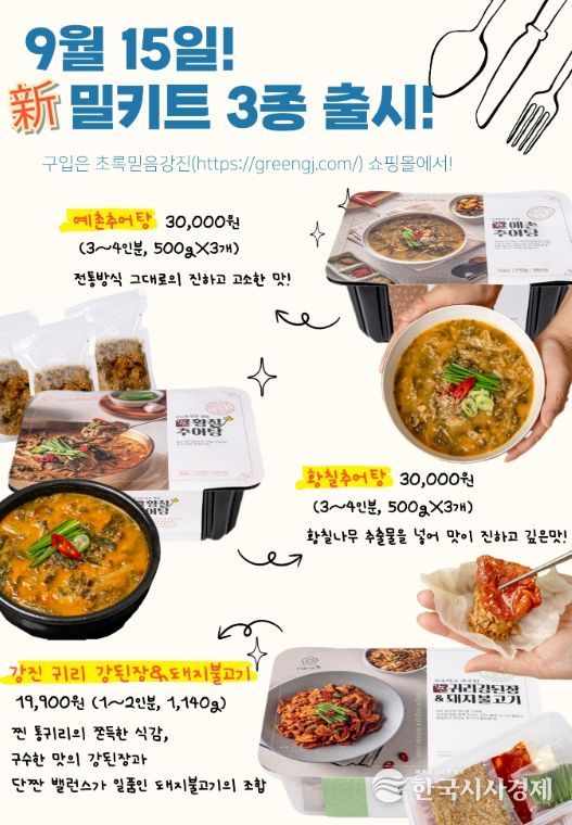 신규로 출시되는 밀키트는 오는 15일부터 초록믿음강진을 통해 온라인 구매가 가능하다.