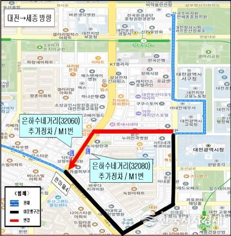 이번 조치로 세종시 누리동에서 대전정부청사까지 운행하는 M1 노선 일부가 조정돼 시민들의 이동 편의성이 크게 높아질 전망이다.