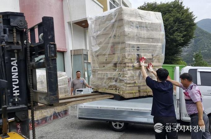 한국시사경제 충북취재본부 | ㈜서울벽지는 지난 10일 단양군 관내 취약계층의 주거환경 개선을 위해 5톤 분량, 5천만 원 상당의 벽지를 후원했다.