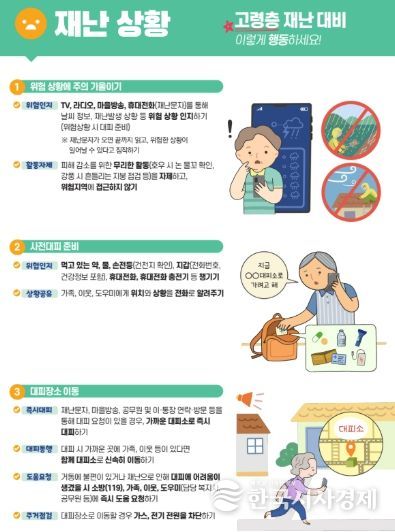 한국시사경제 오영주 기자 | 서산소방서는 태풍‧집중호우 등 자연재난 발생 시 피해에 취약한 고령층 안전을 위해 재난 상황과 재난 후에 행동요령을 담은 자료를 첨부해 홍보에 나섰다.