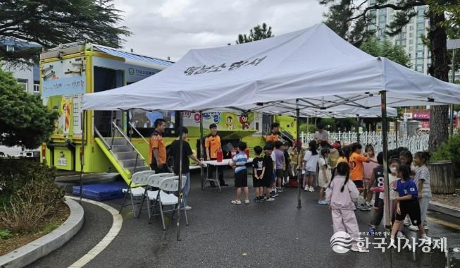 한국시사경제 오영주 기자 | 해남소방서가 지난 9일부터 10일 이틀간 해남읍 소재 해남동초등학교를 대상으로 이동체험차량을 이용해 ‘학교로 찾아가는 소방안전교육’을 실시했다고 밝혔다.