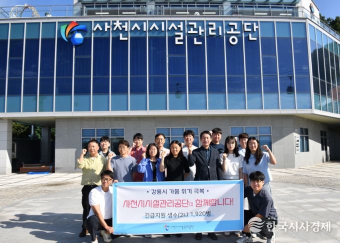 한국시사경제 윤광희 기자 | 사천시시설관리공단은 극심한 가뭄으로 제한급수를 시행 중인 강릉시 주민들의 불편을 덜기 위해 생수를 긴급 지원했다고 11일 밝혔다.