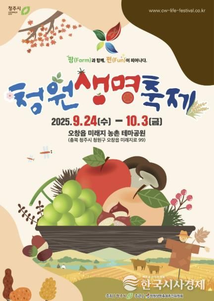 한국시사경제 김태훈 기자 | 청주시 대표 농축산물 축제인 2025 청원생명축제가 오는 9월 24일부터 10월 3일까지 10일간 청원구 오창읍 미래지농촌테마공원에서 열린다.