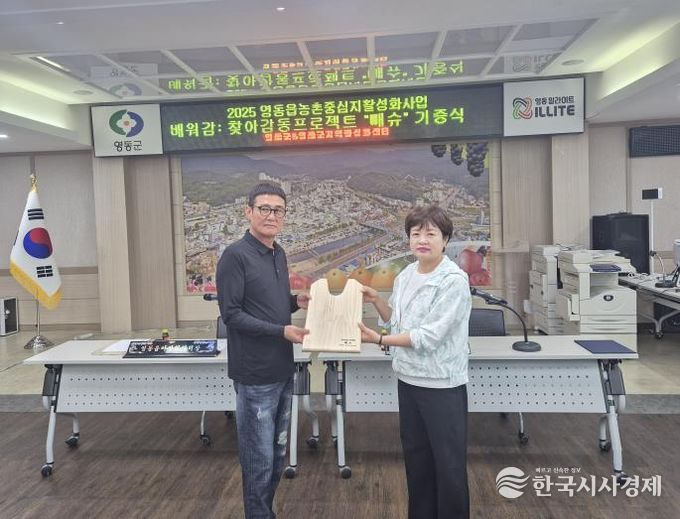 한국시사경제 충북취재본부 | 영동군지역활성화센터는 11일 영동읍 이장단을 통해, 제작한 빼슈 약 150개를 제작하여 기증했다고 밝혔다.