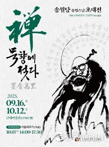 한국시사경제 윤경수 기자 | 군산근대역사박물관이 9월 16일부터 10월 12일까지 근대미술관(구 18은행)에서 송월 스님 초대전『선(禪) 묵향에 젖다 – 묵향만리(墨香萬里)』를 개최한다.
