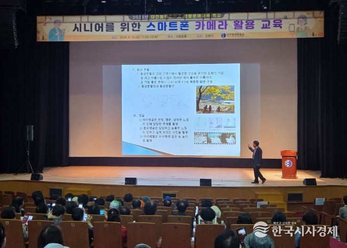 한국시사경제 대전취재본부 | 대전평생학습관은 9월 12일 어울림홀에서 대전늘푸른학교 학습자를 대상으로 ‘시니어를 위한 스마트폰 카메라 활용 교육’을 주제로 특별 강연을 개최했다.