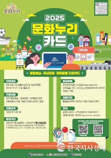 시 관계자는 “2025년 문화누리카드 지원금액이 총 14만원으로 증가해 혜택의 폭이 더 넓어진 만큼, 문화누리카드를 꼭 사용해 주시길 바란다”고 밝혔다.