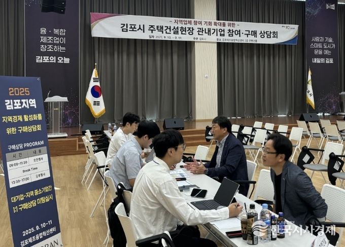 한국시사경제 기동취재팀 | 김포시는 건설경기 침체로 어려움을 겪는 관내 건설업체 지원을 위해 10~11일 이틀간 김포제조융합혁신센터에서 개최한 ‘주택건설현장 관내기업 참여·구매 상담회’가 성황리에 마무리됐다.