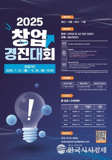 한국시사경제 경북취재본부 | 안동시는 오는 9월 30일까지 ‘2025 창업경진대회’ 참가자를 모집한다.