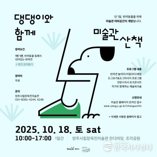 한국시사경제 문화팀 | 양주시립장욱진미술관은 오는 10월 18일, 반려견과 함께하는 특별 프로그램 '댕댕이와 함께 미술관 산책'을 개최한다.