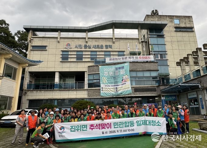 한국시사경제 사회팀 | 평택시 진위면 행정복지센터는 17일 진위면 12개 단체협의회 단체장과 회원, 공무원 등 80여 명과 함께 추석맞이 민관 합동 일제 대청소를 진행했다.
