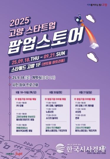 한국시사경제 경기북부취재본부 | 고양특례시는 오는 18일부터 21일까지 4일간 스타필드 고양에서‘2025 고양 스타트업 팝업스토어’를 개최한다고 밝혔다.