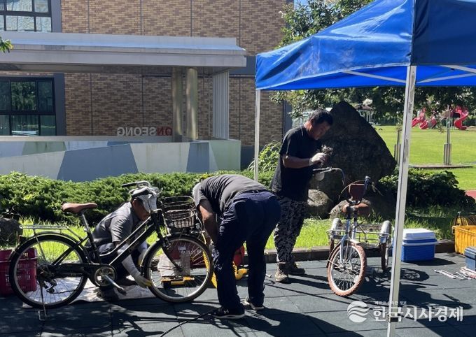 수리 대상 자전거는 모두 15대로 브레이크 점검, 체인 정비, 바퀴 교체, 타이어 공기 주입 등 안전한 주행을 위한 다양한 정비가 이루어졌다.