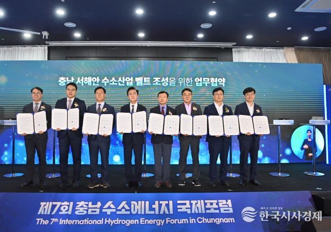 김태흠 지사는 18일 제7회 수소에너지 국제포럼에서 19개 기관·단체·대학·기업과 업무협약을 맺고, 서해안 수소산업 벨트 구축 본격 추진을 안팎에 선언했다.