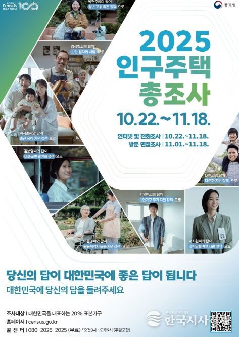 2025 인구주택총조사는 10월 31일 준비조사를 시작으로 11월 1일부터 18일까지 전국적으로 시행된다.