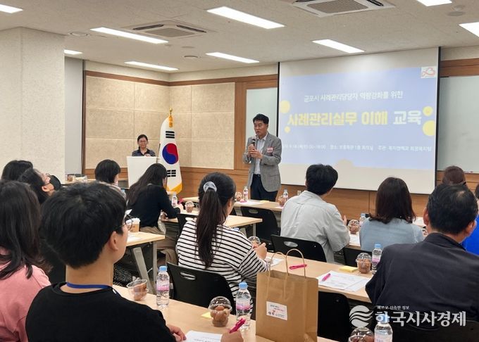 한국시사경제 사회팀 | 군포시 무한돌봄센터는 지난 18일 군포시 보훈회관 회의실에서 사례관리 업무담당자 전문성 강화 및 복지서비스의 질적 향상을 위해 사례관리 실무이해 교육을 실시했다.