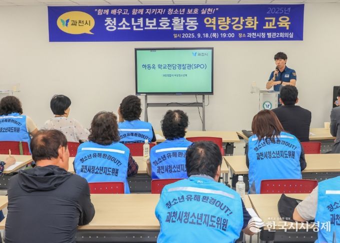 한국시사경제 사회팀 | 과천시는 지난 18일 시청 별관2 회의실에서 청소년지도위원, 유해환경감시단, 문원초 아버지회 등 청소년 선도·보호 활동 단체 40여 명을 대상으로 ‘함께 배우고, 함께 지키자! 청소년 보호실천!’이라는 주제로 역량 강화 교육을 했다.