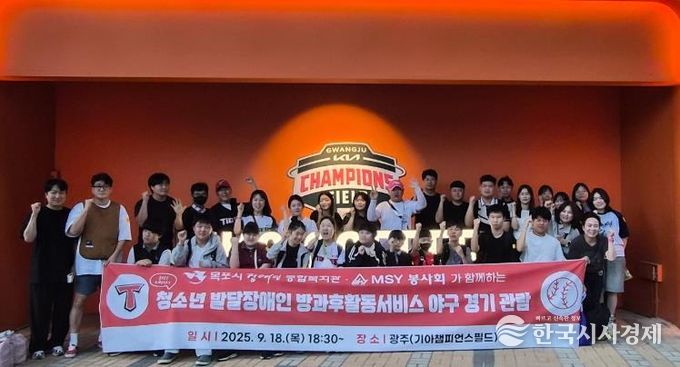 한국시사경제 문화팀 | 목포시장애인종합복지관은 9월 18일 청소년 발달장애인 방과후활동서비스 참여학생 15명과 MSY봉사회 회원 14명이 함께 광주-기아 챔피언스 필드를 찾아 기아 타이거즈와 한화 이글스의 프로야구 경기 관람 체험활동을 진행했다.