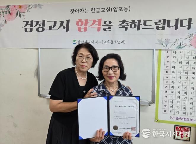 한국시사경제 울산취재본부 | 울산 북구는 '찾아가는 한글교실' 염포동 수강생 주복순(71) 씨가 제2회 중졸 검정고시에 합격했다고 22일 밝혔다.