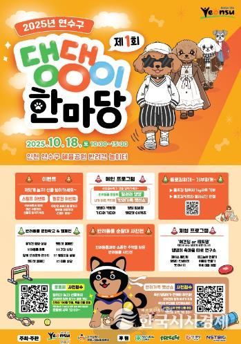 한국시사경제 윤광희 기자 | 연수구가 오는 10월 18일 송도혜윰공원 반려견놀이터에서 반려동물과 주민이 함께하는 축제 ‘2025년 제1회 연수구 댕댕이 한마당’을 개최한다.