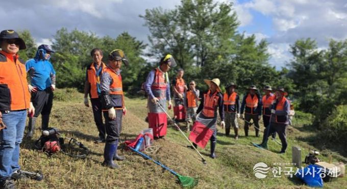한국시사경제 이정이 기자 | 부안군 행안면 의용소방대대원 30여명이 지난 20일 다가오는 추석 명절을 맞이하여 행안 남산. 사산 공동묘지(분묘 694기) 벌초 및 진입로 제초 활동을 실시했다.