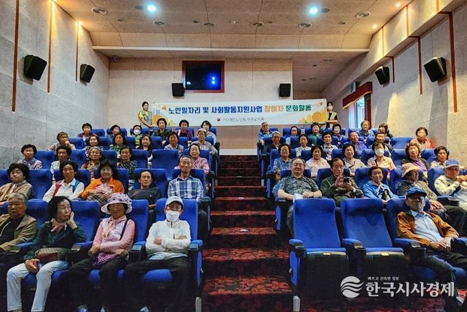 한국시사경제 문화팀 | 무주군은 노인일자리 참여 어르신들 580명을 대상으로 영화 관람을 진행해 호응을 얻었다.