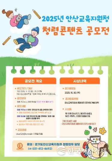 한국시사경제 문화팀 | 경기도안산교육지원청은 9월 22일부터 10월 21일까지 한 달간 ‘2025년 청렴 콘텐츠 공모전’을 개최한다고 밝혔다.