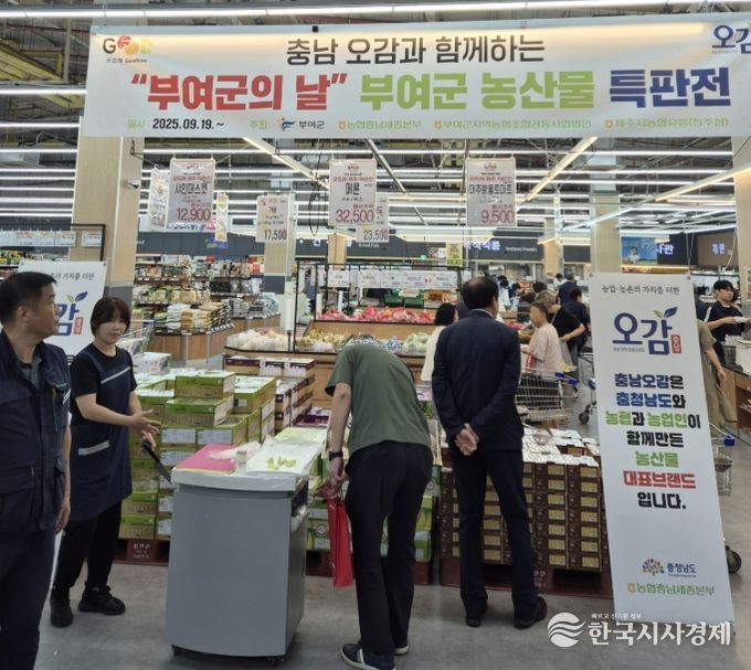 한국시사경제 김태훈 기자 | 부여군은 지난 9월 18일부터 9월 24일까지 7일간 제주도 하나로마트 4개 지점에서 '굿뜨래 농산물 판촉 행사'를 진행하고 있다고 밝혔다.