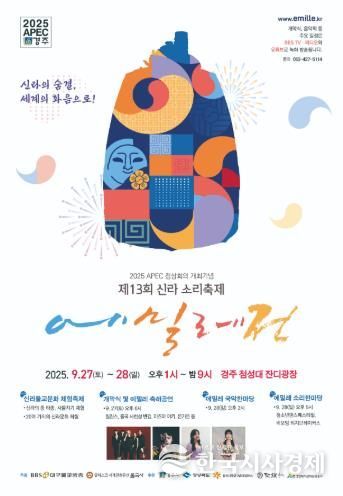 올해로 13회를 맞는 ‘에밀레전’은 ‘신라의 숨결, 세계의 화음으로!’를 주제로, 전통과 현대가 어우러진 공연과 다채로운 체험 프로그램을 통해 경주의 역사적 가치와 함께 ‘2025 APEC 정상회의’ 성공개최 염원을 세계에 알리는 글로벌 문화축제의 장으로 펼쳐진다.