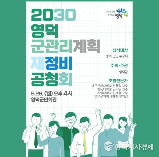 한국시사경제 이정이 기자 | 영덕군은 도시의 지속 가능한 발전과 합리적인 토지이용을 위해 ‘2030 영덕 군관리계획 재정비(안)’ 공청회를 오는 29일 오후 4시 영덕군민회관에서 진행한다.