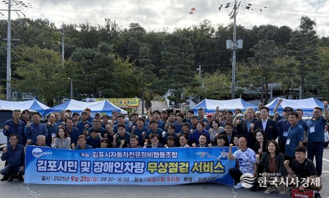 한국시사경제 경기북부취재본부 | 김포시와 경기도자동차전문정비사업조합 김포시지회가 주관한 ‘2025년 김포시민 차량 무상점검 행사’가 지난 21일 김포시청 주차장에서 개최됐다.
